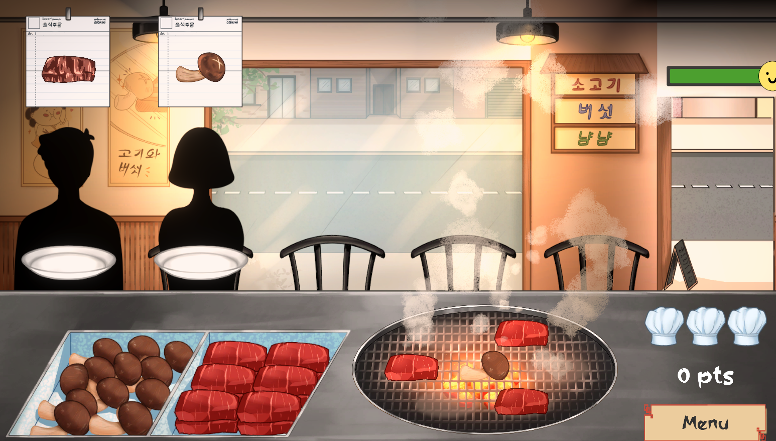 Undercooked es un juego arcade de simulación en primera persona donde el jugador gestiona un restaurante coreano de parrilla. Deberá cocinar con precisión, controlar los tiempos de cocción y servir a los clientes antes de que la cola crezca demasiado. A medida que avanza la partida, la presión aumenta donde su objetivo es conseguir la mayor puntuación posible.